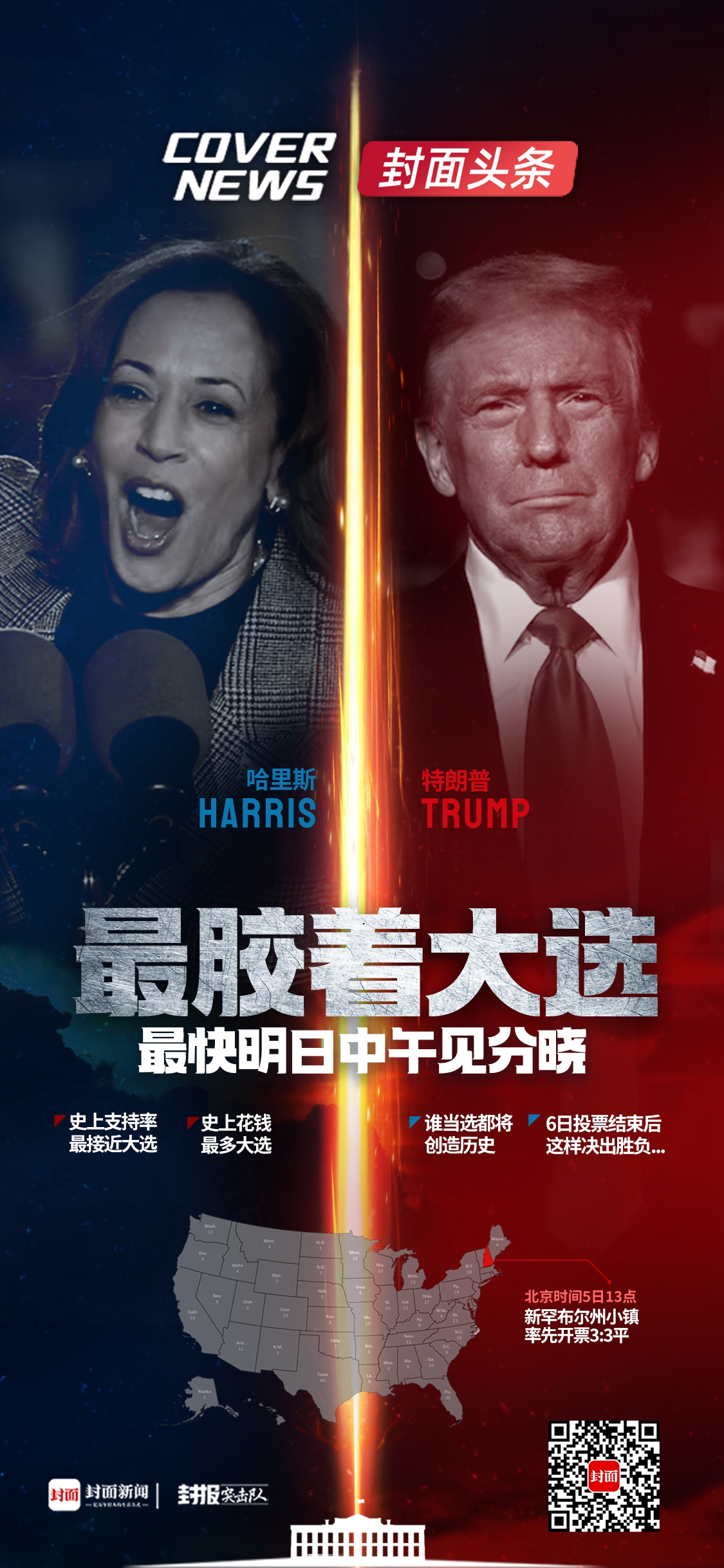 是特朗普成为好意思国第二位非连任方法在野两届的总统?一经哈里斯创造历史成为好意思国第一位女总统?终极悬念行将揭晓。